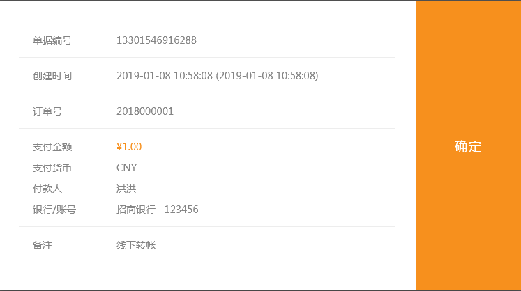 当订单状态是未支付时(客户无法使用网站提供的在线支付接口付款时,通过线下转帐、现金支付等方式收到的款)管理员在订单中点击支付后录入收款信息会生成收款单